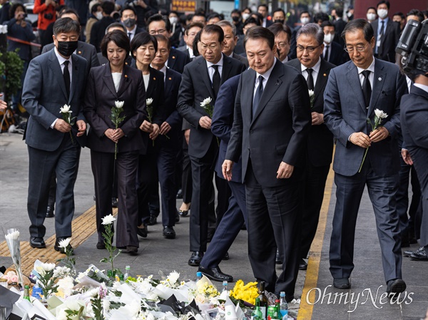 대변인실에 따르면 윤 대통령은 서초동 사저에서 보고를 받은 뒤 11시 21분 행정안전부 장관 등에게 신속한 구급 및 치료에 만전을 기하라고 1차 긴급 지시를 내렸다. 이후 11시 54분 부상자에 대한 보고를 받고, '신속히 응급병상을 확보하고 보건복지부 응급의료체계 가동하라'는 2차 긴급 지시를 내렸다.