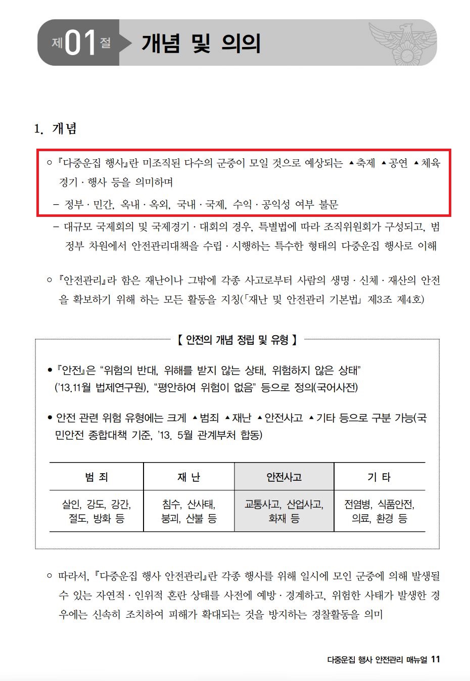 하지만 시민 안전에 '주최자 여부'를 따지며 '법률 미비'를 말하는 정부 당국의 책임회피는 그 자체에 근본적으로 문제가 있다. 참사 이전에도 적용할 수 있는 법령과 매뉴얼은 충분히 있었다. 2005년 10월 경북 상주시민운동장에서 열린 공연에 입장하던 시민 11명이 압사한 사고 이후 행정안전부에서는 '지역축제안전관리매뉴얼'이 수립되었고, 경찰에는 이미 다중운집 행사를 "정부·민간, 옥내·옥외, 국내·국제, 수익·공익성 여부 불문"으로 규정한 '다중운집 행사 안전관리 매뉴얼'도 있었다. (관련기사: '매뉴얼 있는데 또 만든다…참사 한 달 ‘경찰 대혁신 TF’가 하는 일', 뉴스타파)