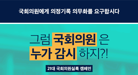 결국 법을 바꿔야 할 일인데, 그냥 되진 않을 것이다. 마침 좋은 시작점이 있다. 2008년부터 알 권리 확대운동을 벌여온 ‘투명사회를 위한 정보공개센터’라는 시민단체의 캠페인이다. 이곳은 작년 5월에 모든 국회의원실에 기록 기증을 요청하는 캠페인을 벌였는데, 19대 국회 20곳에서 20대 국회 30곳으로 기록을 기증한 의원실이 늘어난 데는 이곳의 기여가 있었다. 이곳이 최근에 ‘21대 국회의원실록 캠페인’이라는 이름으로 제도 개선을 요구하는 서명운동을 시작했다. “기록이 있어야 공개와 감시가 가능하다.” 캠페인 취지는 이렇게 간명하다.